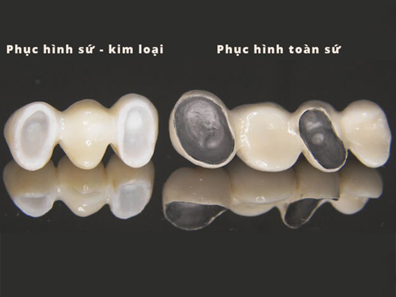 • Cầu răng sứ sứ kim loại: Phần khung sườn được làm bằng kim loại, bên ngoài được phủ sứ. Cầu răng sứ sứ kim loại có độ bền cao nhưng tính thẩm mỹ không bằng cầu răng toàn sứ.